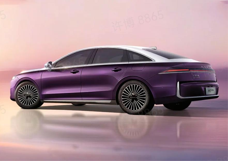 IT之家注意到,荣威 M7 DMH 在外观上采用了全新的设计语言,前脸配备了大尺寸直瀑式前格栅,格栅内部的荣威 ROEWE 字母标识具备发光功能,分体式前灯组中的“矢量光轨晶钻日行灯”为 LED 日间行车灯,搭配 U 型镀铬饰条的前包围,使前脸更具辨识度。车身侧面以平滑弧面为主,未采用隐藏式门把手,外后视镜装饰罩与车身同色,侧窗周边的镀铬饰条以及黑化的 B 柱、C 柱和后三角窗轮廓,进一步提升了车辆的精致感。车尾部分,溜背 + 短车尾的设计风格搭配贯穿式尾灯,内部 LED 灯带错落有致,点亮后层次感十足,“ROEWE”品牌标识位于后备厢盖中央,后包围底部的 U 型镀铬饰条与前脸相呼应,隐藏式单边单出的排气布局则更显低调。此外,荣威 M7 DMH 提供 7 款车身配色,包括慕斯白、浅茶金、大溪地灰、东来紫、朗月岚、珠光黑以及铂金银,还有 3 款双拼色涂装,但后者是否量产尚未确定。